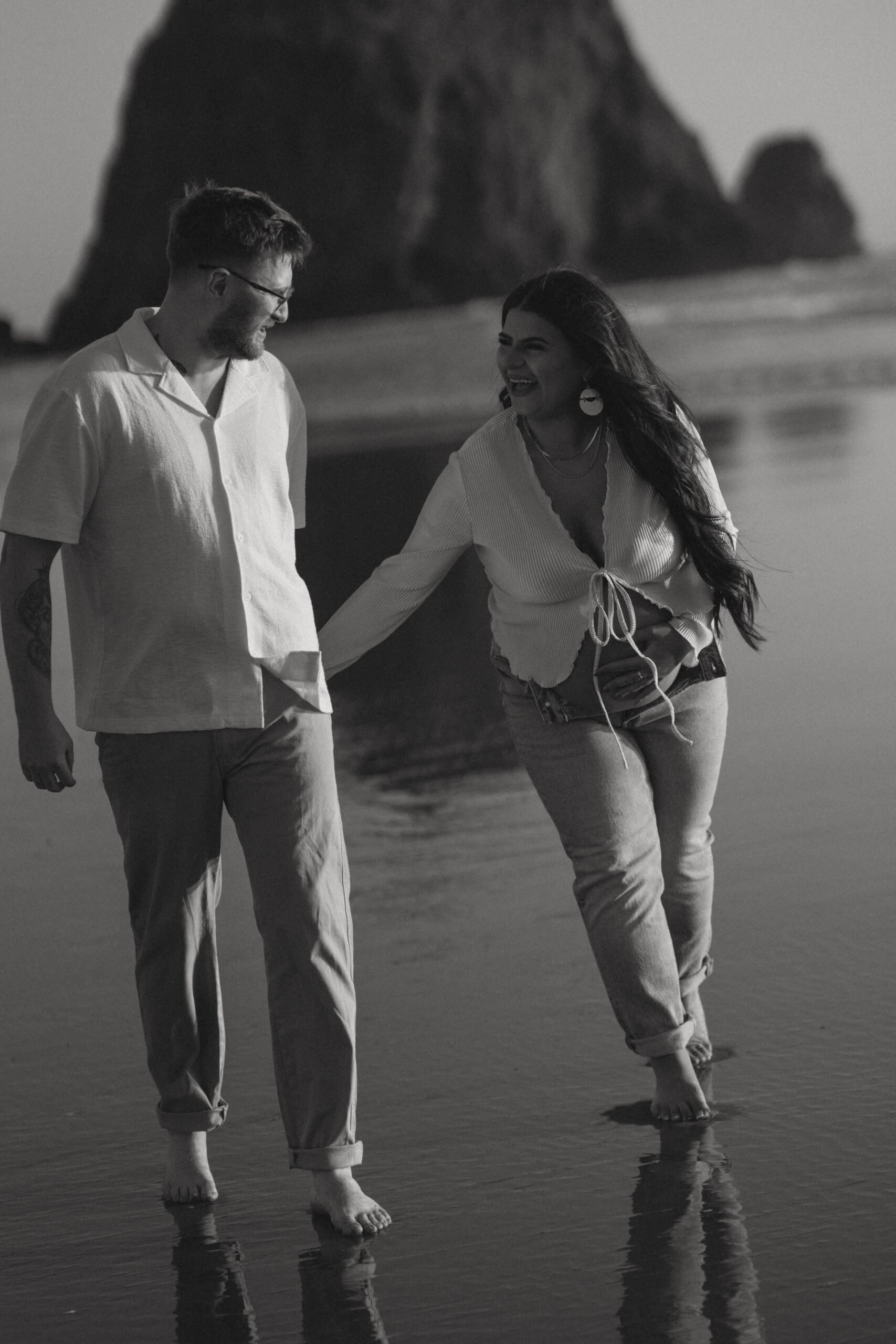 We hit the coast at the perfect time. Cannon Beach gave us everything—the kind of sunset that makes you stop in your tracks and just say, “Wowwwwwwwww.” Between the glowing sand and the dreamy golden light, it was basically a photographer’s dream. And Elaina and Dillon? They showed up with their usual playful energy, cracking jokes and keeping things so easygoing.