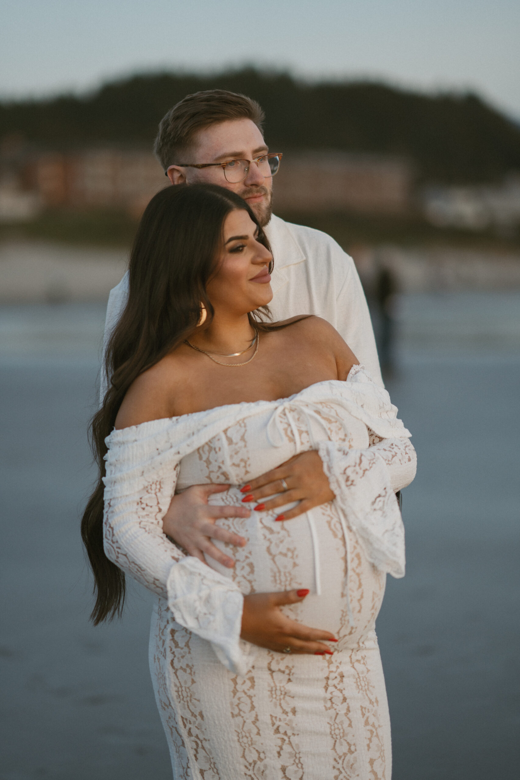 Elaina was GLOWING—and not just because she’s rocking that hot mama vibe, the sunset was lighting her up like she was the star of the show. Dillon spent most of the session either making her laugh or holding her hand while they navigated the sand.